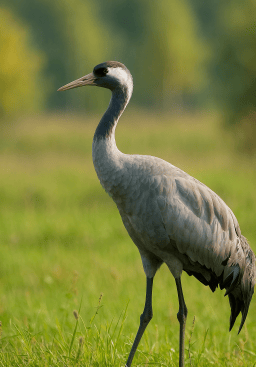 Majestätisch wie ein alter König schreitet der Kranich übers Schilf, entfaltet Flügel wie Segel gegen den Morgenwind. Sein trompetender Ruf schneidet durch Nebel und Zeit